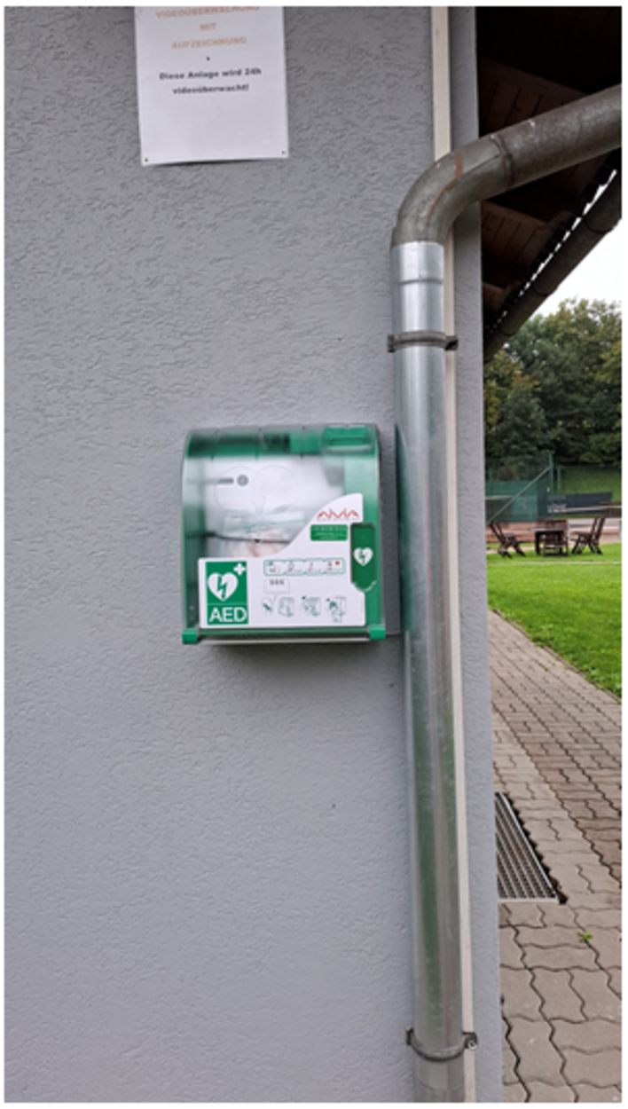 Durch intensive Verhandlungen mit den zuständigen Gemeindevertretern ist es unserem Obm.-Stv. Hubert H. gelungen, einen Defibrillator zu akquirieren. Das medizinische Gerät (ACHTUNG! ALARMFUNKTION!) wurde heute gut sichtbar und für die Öffentlichkeit zugänglich an unserem Clubhaus montiert.